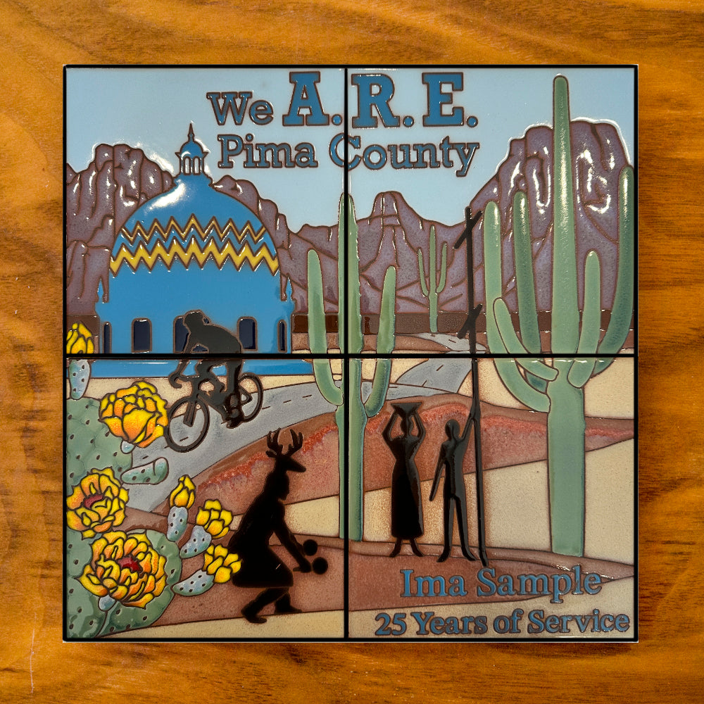 Individual 6x6 hand glazed tiles featuring desert icons, cork backed for easy hanging.