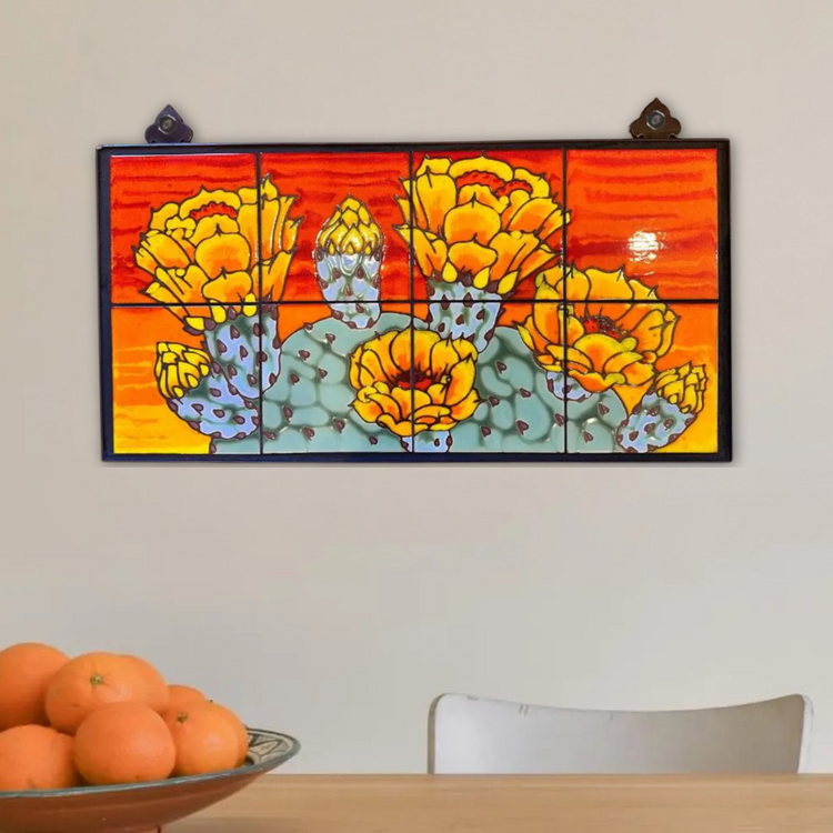 Prickly Pear on Terra Cotta, Emerald or Dark Blue, 12x24 Tile Mural