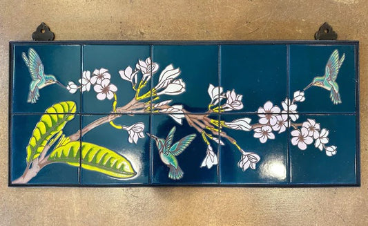 Plumeria & Hummingbirds Hand Glazed Tile Mural