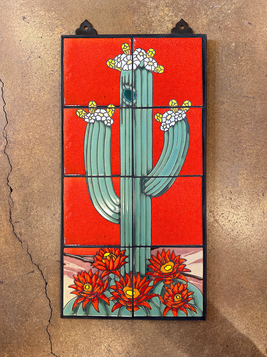 Saguaro on Terra Cotta, Red, or Emerald, 12x24 Hand Glazed Tile Mural