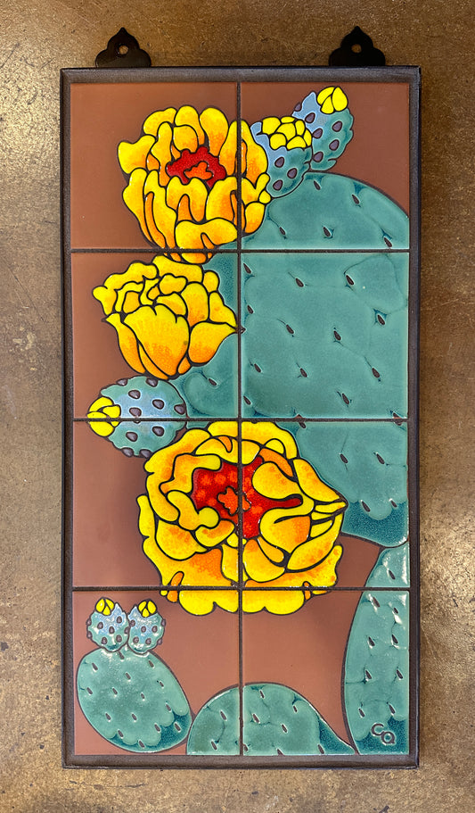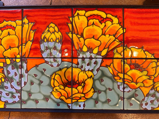 Prickly Pear Blooms Tile Mural on Emerald, Terra Cotta, or Black Adventurine Tile
