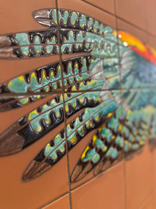 Plumeria & Hummingbirds Hand Glazed Tile Mural