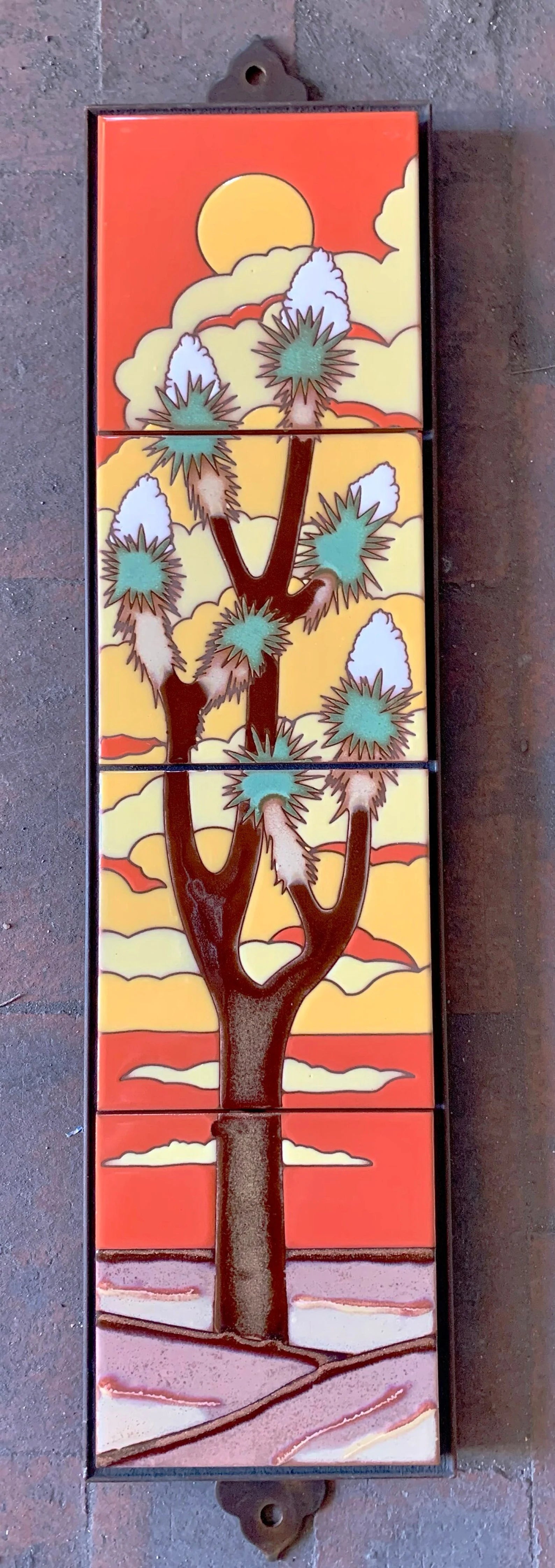 Our 6"x24" Retro Joshua Tree mural is comprised of 4, 6"x6" tiles that have been glazed and fired at over 1,900 degrees to create a lasting piece of art for both indoor and outdoor use.