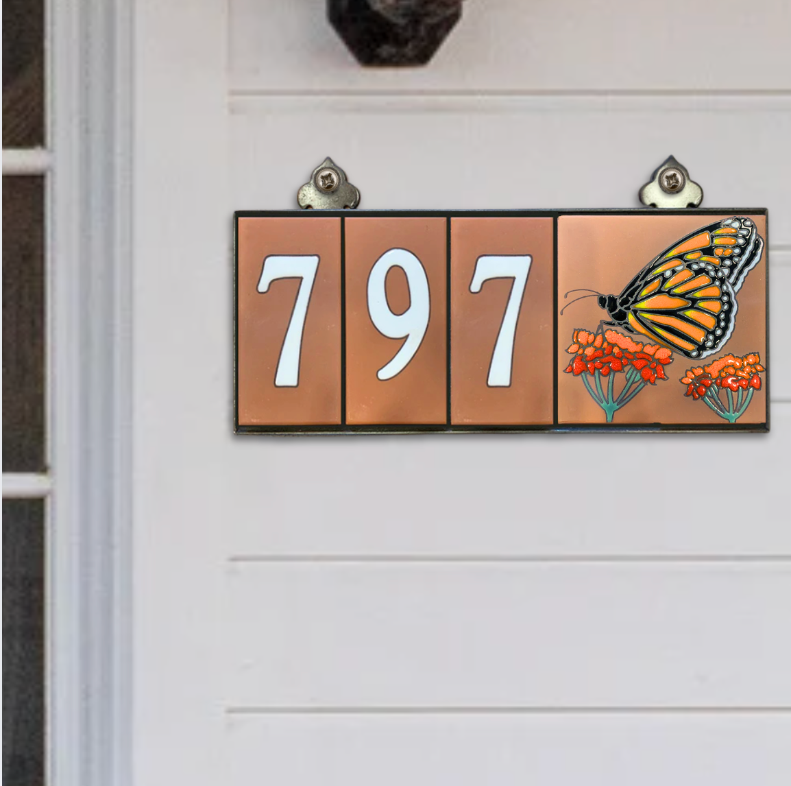 Choose your design: Tile Address Sign with Cactus, Butterfly or Hummingbird design, Terra Cotta Background and White Numbers