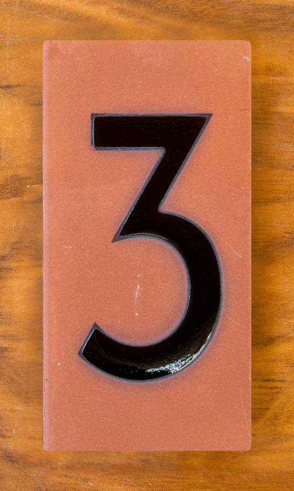 Each number (0-9) is crafted with precision and care, echoing the clean lines that define Wright’s work. Pair them with Whirling Arrow end cap tiles, featuring his design inspired by petroglyphs at his Southwest Taliesin West property, or mix them with other 3”x6” tile designs for a custom look.