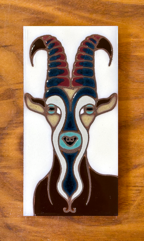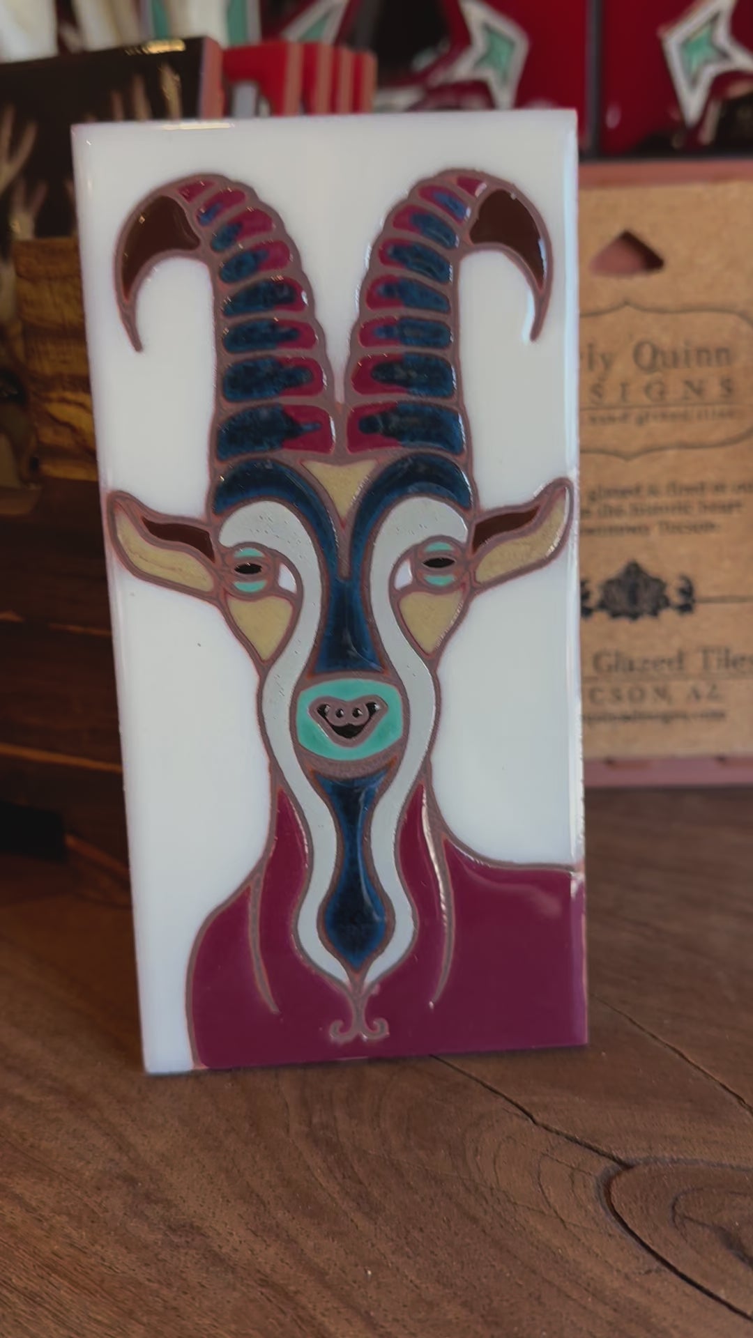 Looking for the perfect gift for a goat lover? This 3"x6" ceramic tile features a charming goat design on a crisp white background - an ideal farmhouse gift or rustic animal decor piece. Each tile is hand-glazed and kiln-fired by our small team of artists in Tucson, Arizona, ensuring every piece is one-of-a-kind with beautiful glaze variations.
